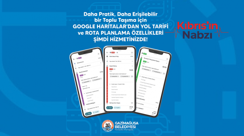 Gazimağusa Belediyesi’nin hayata geçirdiği "Esnek Toplu Taşıma Sistemi", dijital altyapı çalışmaları kapsamında Google Haritalar’a entegre edildi.